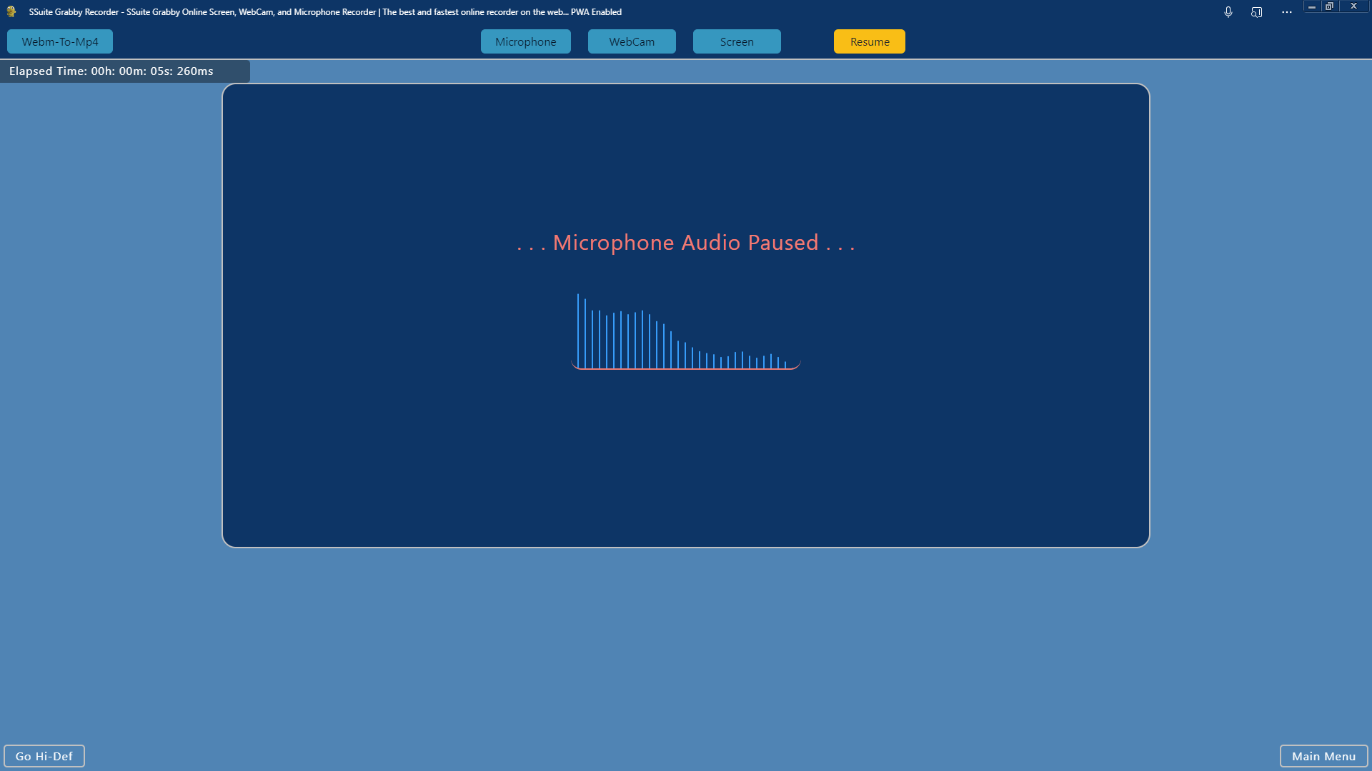 If you take a look at the bottom two buttons, you will see that the left button will take you to another Grabby edition that uses much higher definition codecs for your audio and video recordings. When recording video, it will encode with the VP8 codec which will deliver a much higher quality video. For audio in this edition of Grabby, it uses PCM which is uncompressed sound or the exact sound that your system is configured for. This is the highest quality audio you can record.